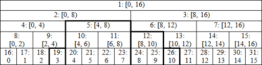 일반적인 아이디어는 다음과 같다. 왼쪽 간격 경계인 left가 홀수이면 (left & 1) left는 부모의 오른쪽 자식이다. 그런 다음 간격은 노드 left를 포함하지만 부모를 포함하지 않는다. 따라서 tree[left]를 더하고, left = (left + 1) / 2 후 left의 부모의 오른쪽으로 이동한다. left가 짝수이면 왼쪽 자식이고 간격에는 부모도 포함된다. 그래서 left = left / 2 로 설정해서 왼쪽으로 이동한다. 오른쪽 경계에도 비슷한 논증이 적용된다. 경계가 만날 때까지 진행하고, 만나면 멈춘다.
